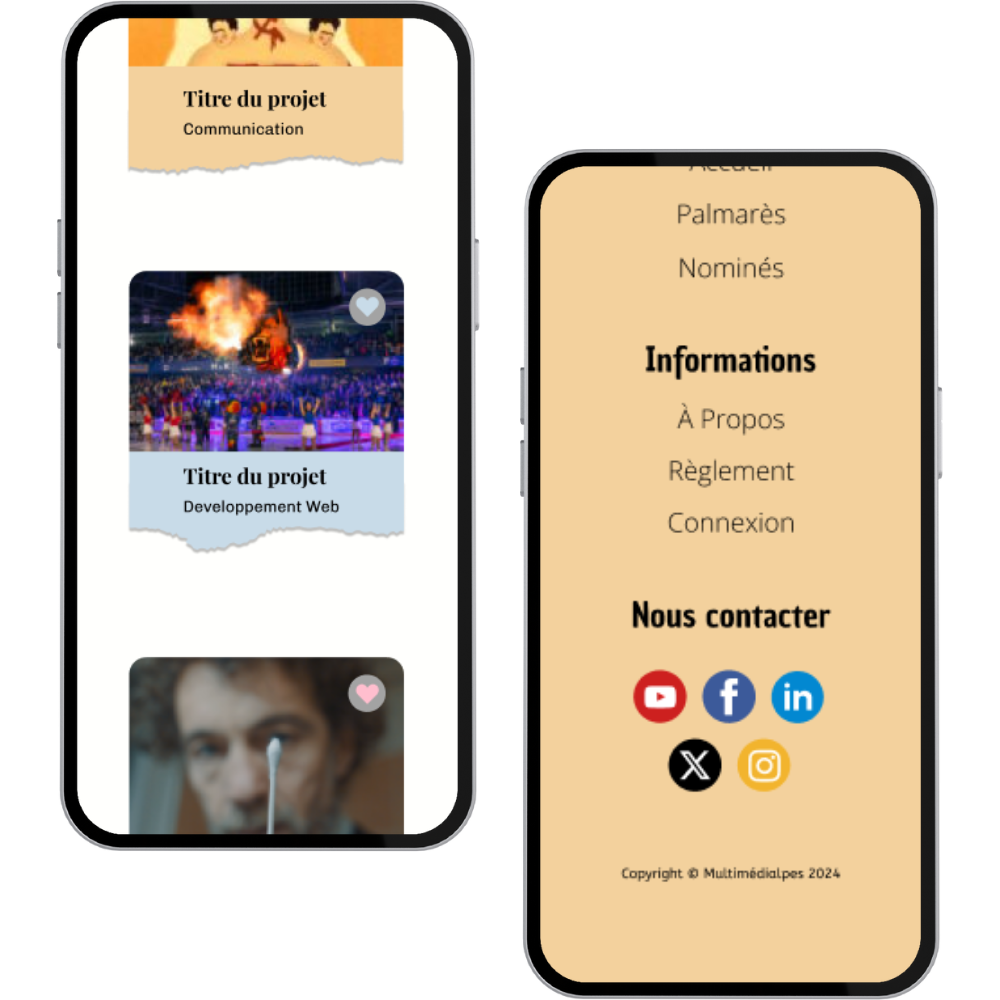 Avant de passer à la création, on a pris du temps pour s’inspirer. On a exploré des plateformes comme Pinterest et Behance pour capter des ambiances graphiques qui pourraient correspondre à notre idée. On a aussi regardé des sites récompensés sur Awwwards, pour analyser les tendances actuelles en webdesign et les bonnes pratiques en UX. C’était important de trouver un équilibre entre inspiration et originalité : on ne voulait pas copier, mais s’appuyer sur ce qui fonctionne. On a aussi pris le temps d’étudier les anciennes éditions du festival pour comprendre ce qui avait déjà été fait — et ce qu’on pouvait apporter de nouveau.