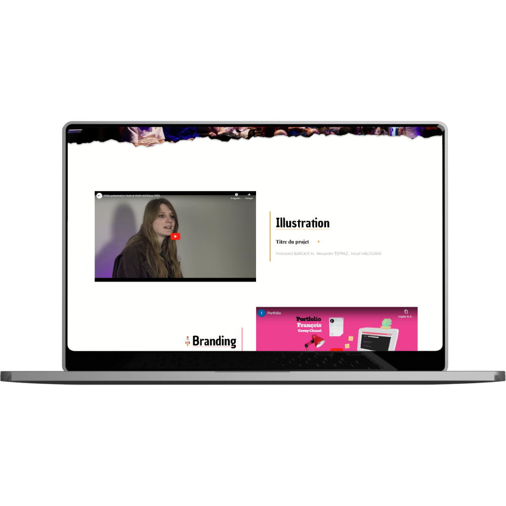 Dans mon groupe, chacun a un rôle bien défini mais on avance aussi en collaboration. Pour ma part, je me suis beaucoup investi dans la direction artistique et l’UI/UX. On a commencé par définir une ligne graphique forte : un univers mêlant scrapbooking et surréalisme, pour coller à l’esprit créatif et étudiant du festival. Ensuite, on a travaillé sur la structure du site, l’arborescence, l’accessibilité, les composants, et les animations. D’autres membres ont pris en charge la vidéo, le logo animé ou encore la stratégie réseaux sociaux. Ensemble, on veut vraiment créer une proposition professionnelle, mais qui garde une touche artistique et décalée, fidèle à l’ADN de MULTIMEDIALPES.